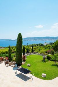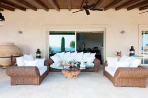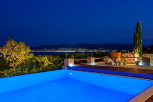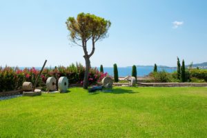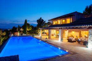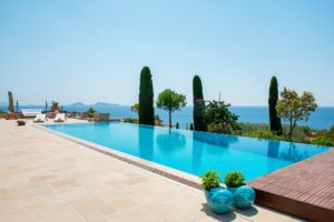 Η υπερπολυτελής βίλλα Blue Diamond περιβάλεται από επιβλητικούς κήπους με εντυπωσιακά πεύκα, πολλών ετών ελιές, αρωματικά λουλούδια και βότανα καθώς και καταπράσινους χώρους με γρασίδι. Η μεγάλων διαστάσεων πισίνα (17X6) δεσπόζει στον εξωτερικο της χώρο. Η βίλλα Blue Diamond συνδυάζει αρμονικά την πολυτέλεια με την άνεση που ονειρεύεστε για τις διακοπες σας.